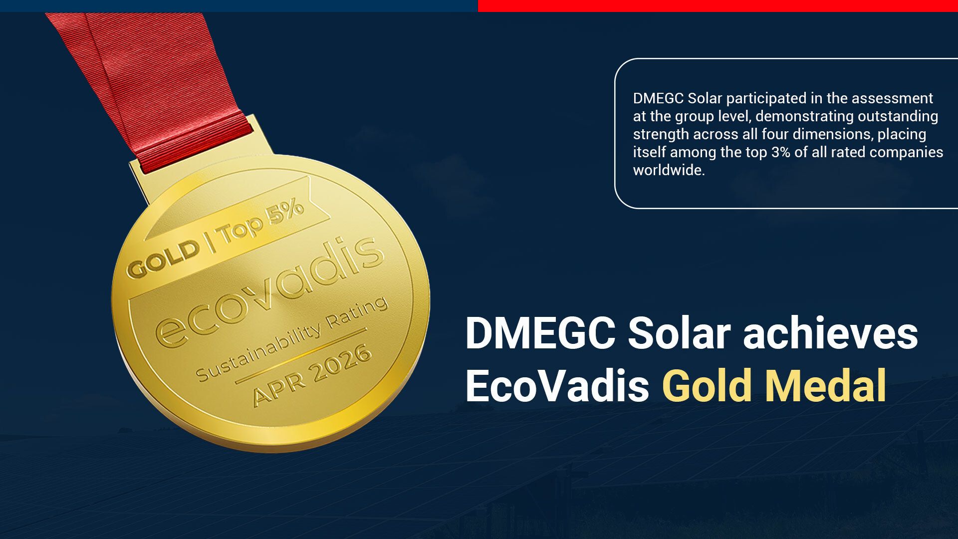 DMEGC Solar Achieves EcoVadis Gold Medal, Underscoring Its Commitment to ESG ExcellenceContributed by: PR NewswireImagesTagsDMEGC-EcoVadis