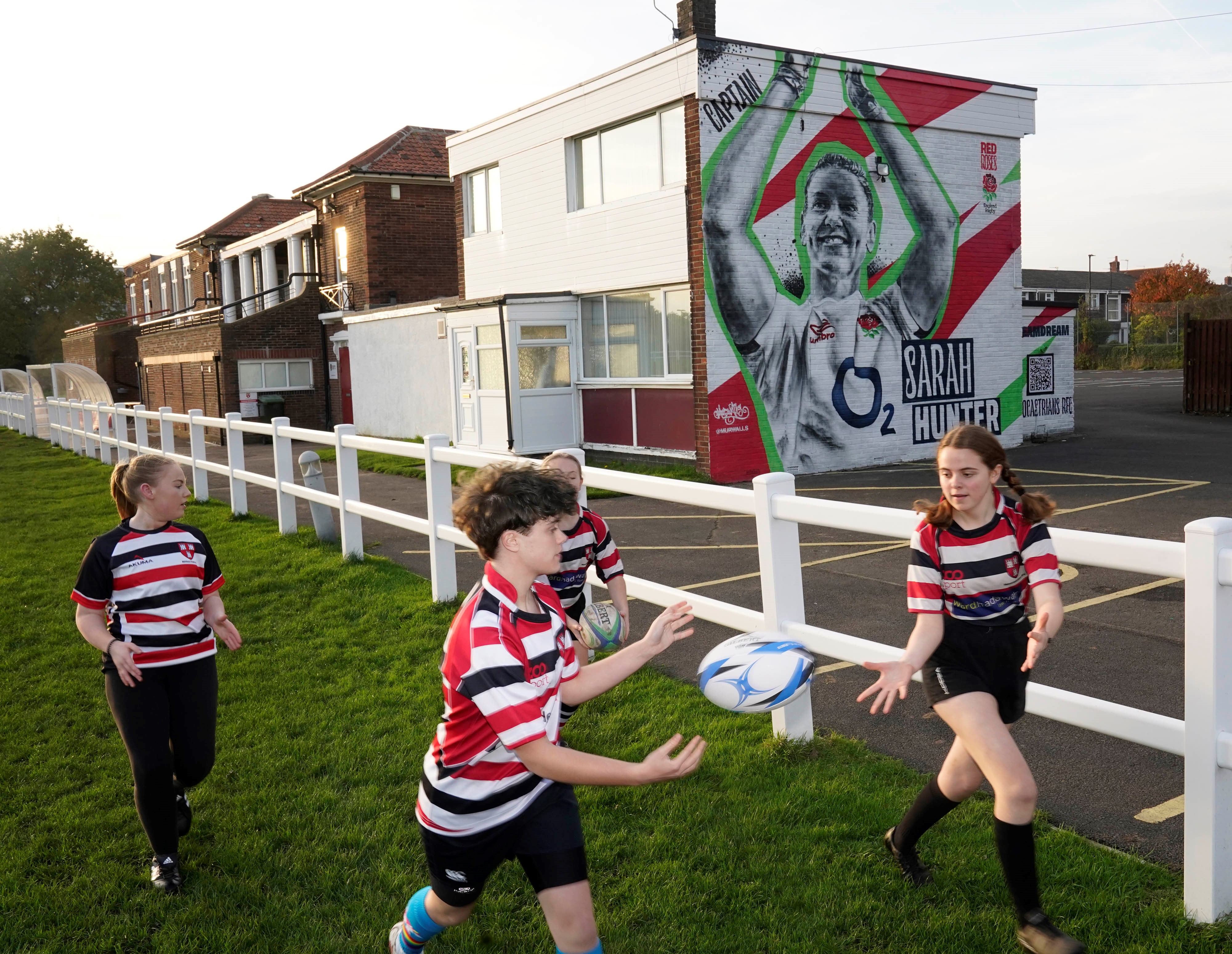 EDITORIAL USE ONLY Players from Novocastrians RFC train during the unveiling of a mural of England Rugby player, Sarah Hunter, commissioned by England Rugby and O2, in Newcastle ahead of Red Roses’ game against Australia on Sunday in New Zealand. Issue date: Friday October 28, 2022.